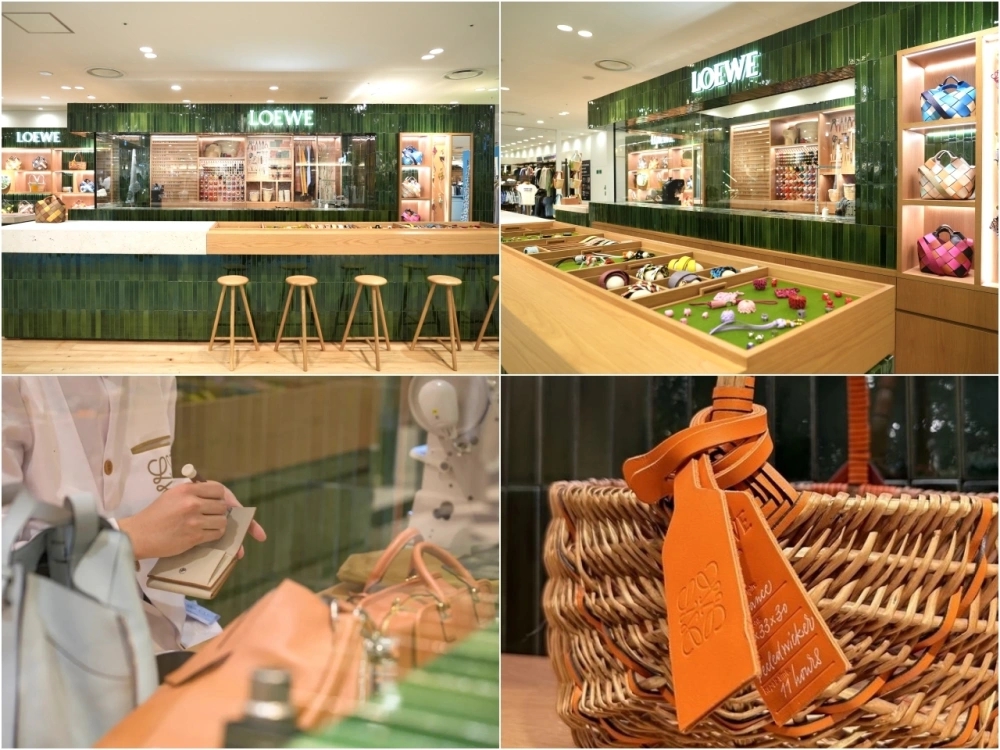 卖场内的奢侈品牌包括 PRADA、Chloe、MIU MIU、GUCCI等。西班牙的奢侈品牌LOEWE钟情于皮革,旗下全球首创的LOEWE Recraft店铺在此开业,常驻工匠负责旗下产品的补修,清洁和维护。以前只能寄送到西班牙的工厂让当地工匠修理,往往需要耗费数十周的时间。现在根据修理的内容,可能当日就能修好。欢迎有需要的客人来LOEWE Recraft进行咨询。